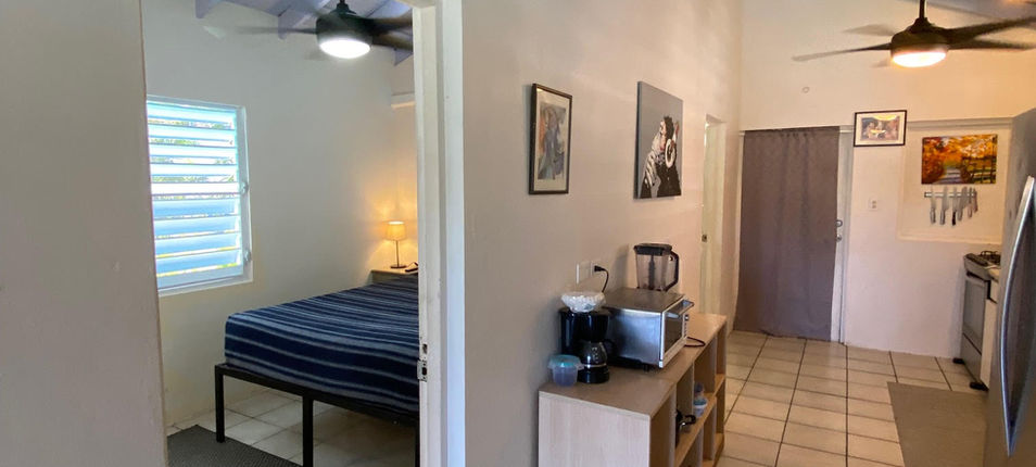 The Palometa, our guest room, offers a king size bed, private bathroom, air conditioning, ceiling fan, mini-fridge, coffeemaker, beach chairs, beach towels, cooler, patio and private entrance.